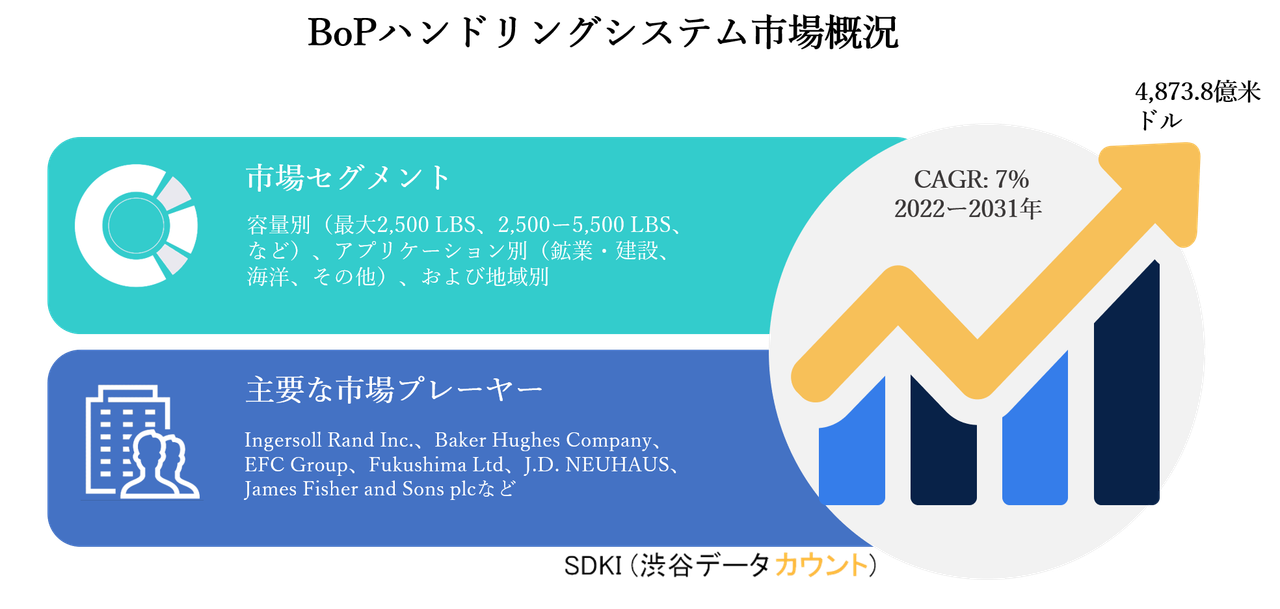 BoPハンドリングシステム市場ー業界洞察、主要プレーヤー・企業別、成長機会別、最新傾向別、開発別、主要な成長ドライバー別、主要な課題別によってセグメンテーション、予測 2031年