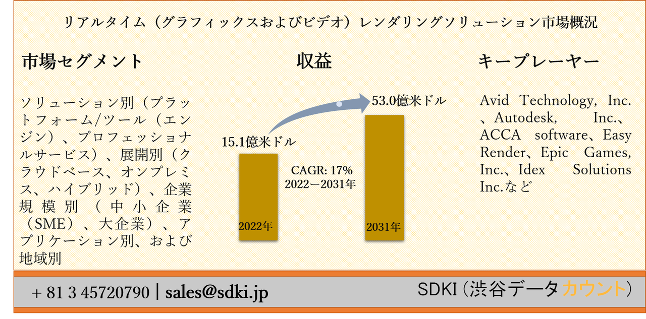 リアルタイム(グラフィックスおよびビデオ)レンダリングソリューション市場ー業界洞察、主要プレーヤー・企業別、成長機会別、最新傾向別、開発別、主要な成長ドライバー別、主要な課題別によってセグメンテーション、予測 2031年